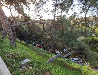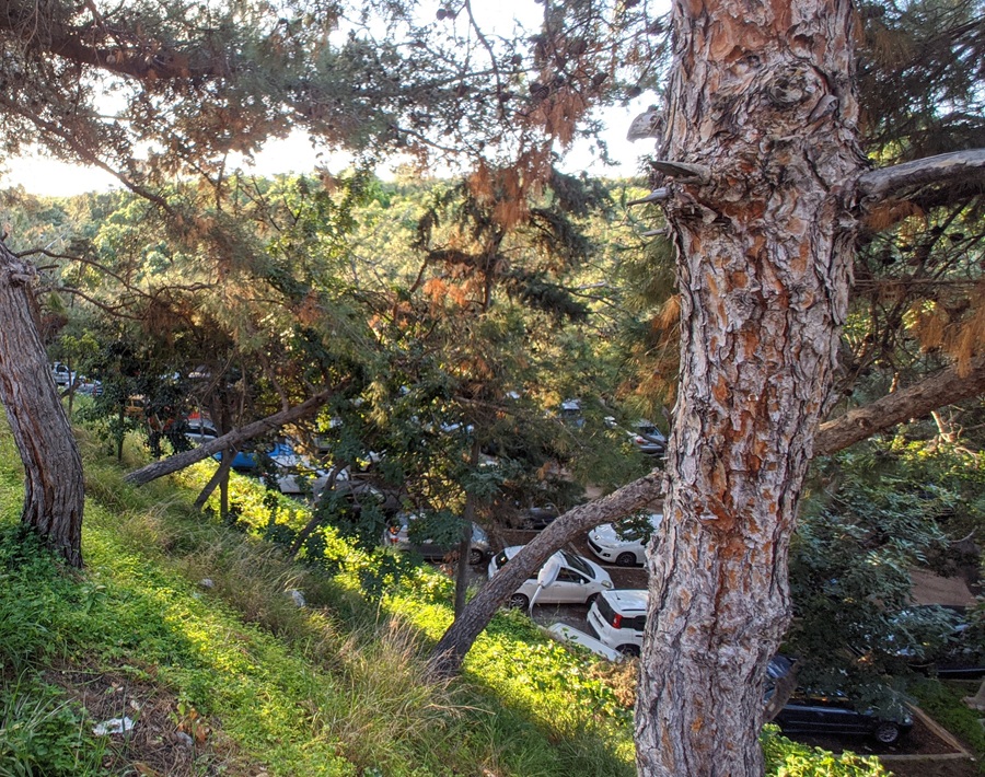 Διερωτάται κανείς πόσοι από τους κατόχους οχημάτων που σταθμεύουν στην τάφρο έξω από την Καινούργια Πόρτα, έχουν παρατηρήσει τα πεύκα που βρίσκονται στο πρανές του δρόμου πάνω από το χώρο στάθμευσης;