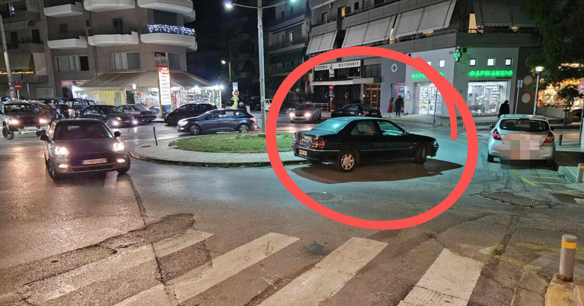 εκεί τον/την βόλεψε, εκεί το άφησε! Όπως βλέπετε και στη φωτογραφία που σας στέλνω, πάνω στο κυκλικό στην Ρομαντική Γωνιά, έχουν παρκάρει(;) το μαύρο αυτοκίνητο.