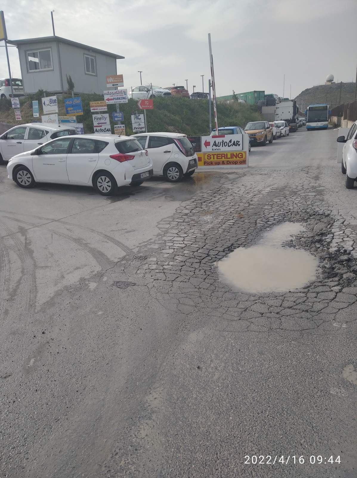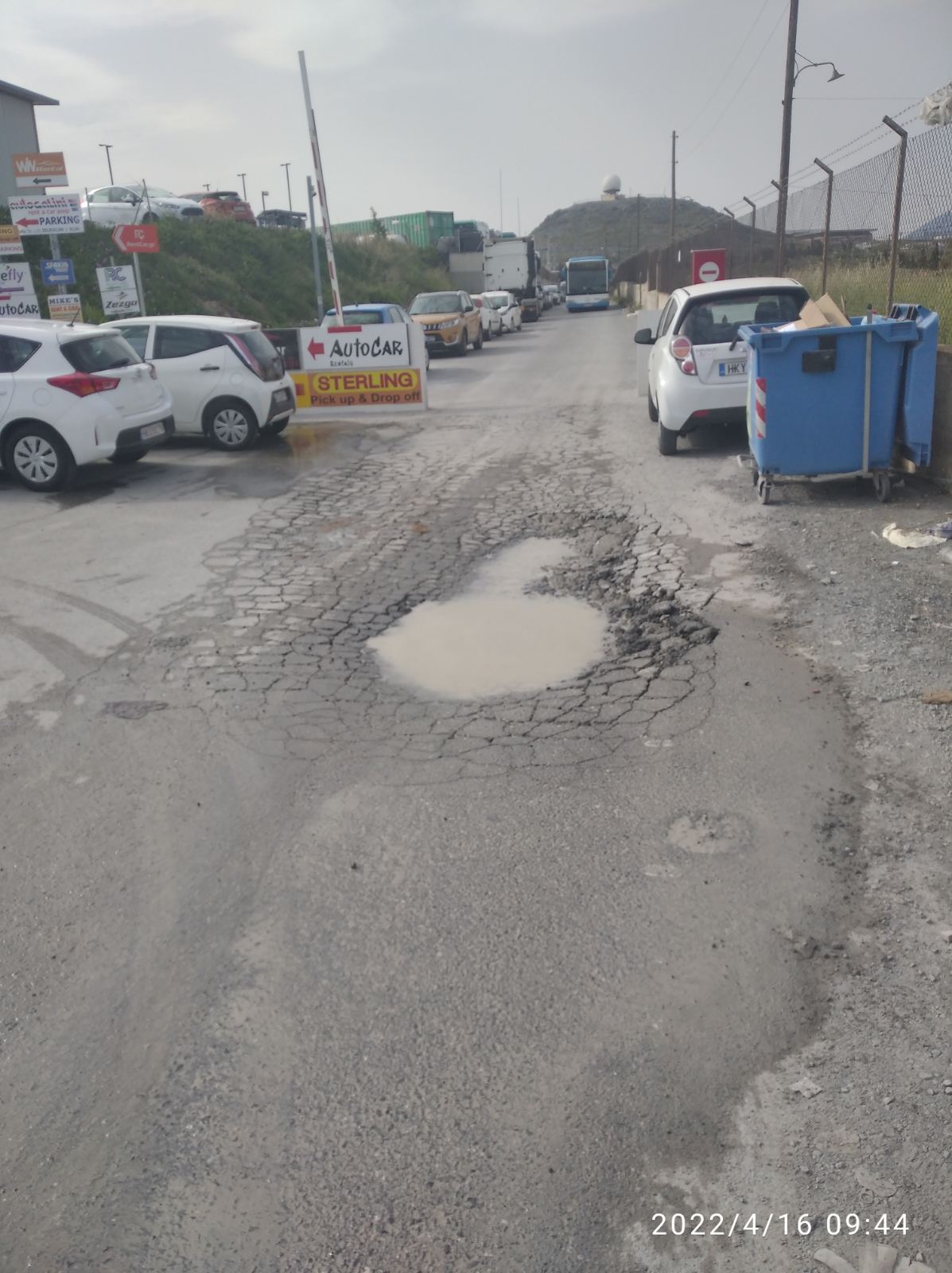 Στο χώρο αυτό υπάρχουν δεκάδες εταιρείες και περνούν δεκάδες χιλιάδες κόσμου κάθε σαιζόν. Αυτό ο χώρος, ο οποίος θα ήταν σωστό να είναι έστω καθαρός, μοιάζει με χωματερή, μιας και δεν έρχεται κανένας για να καθαρίσει. Για υποδομές δε μιλάμε. Δεν υπάρχουν τουαλέτες - έστω και χημικές. Δεν υπάρχει ένα παγκάκι για τους κουρασμένους ταξιδιώτες που είναι φορτωμένοι με τις βαλίτσες τους. Λακκούβες και νερά τρέχουν μόνιμα λόγω σπασμένων σωλήνων.
