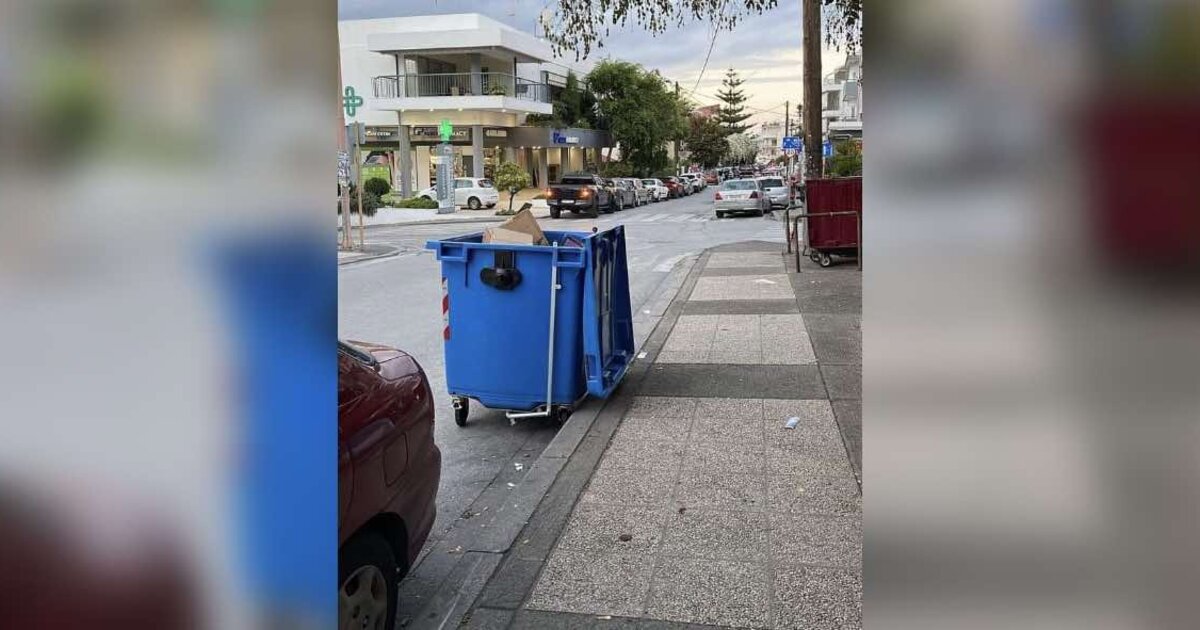 Αναγνώστης του Cretalive στέλνει φωτογραφία από κάδο ανακύκλωσης ο οποίος βρίσκεται στον δρόμο και εκφράζει την απορία του