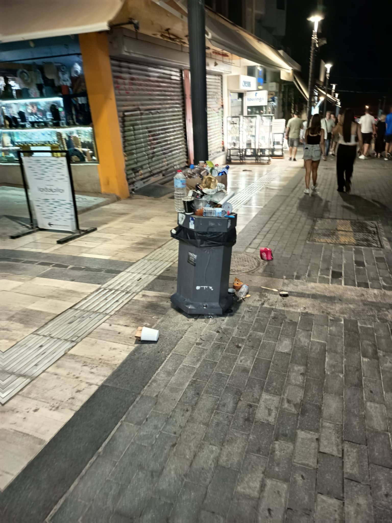 Εξαιρετικά άσχημη εντύπωση προκάλεσε σε όσους περνούσαν – κι ήταν πολλοί- το βράδυ του Σαββάτου από την 25ης Αυγούστου, στο κέντρο του Ηρακλείου, η εικόνα με τα ξεχειλισμένα από σκουπίδια καλαθάκια.