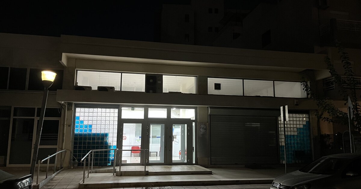 το κατάστημα της ΔΕΗ στη Χρυσοστόμου είναι κάθε βράδυ με όλα τα φώτα αναμένα εντός του καταστήματος.