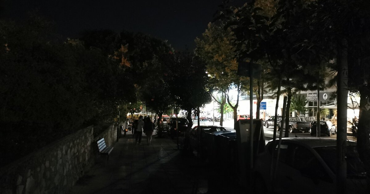Στην περιοχή της Όασης, εκεί που βρίσκεται και το κτήριο της Πυροσβεστικής, η μια πλευρά του δρόμου είναι απόλυτα φωτισμένη, ενώ στην απέναντι πλευρά επικρατεί... συσκότιση!