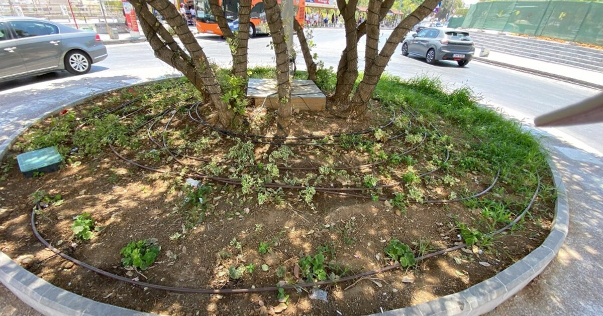 Πριν από ένα μήνα υπήρχαν όμορφα λουλούδια στο κυκλικό μπροστά από την πλατεία Ελευθερίας.