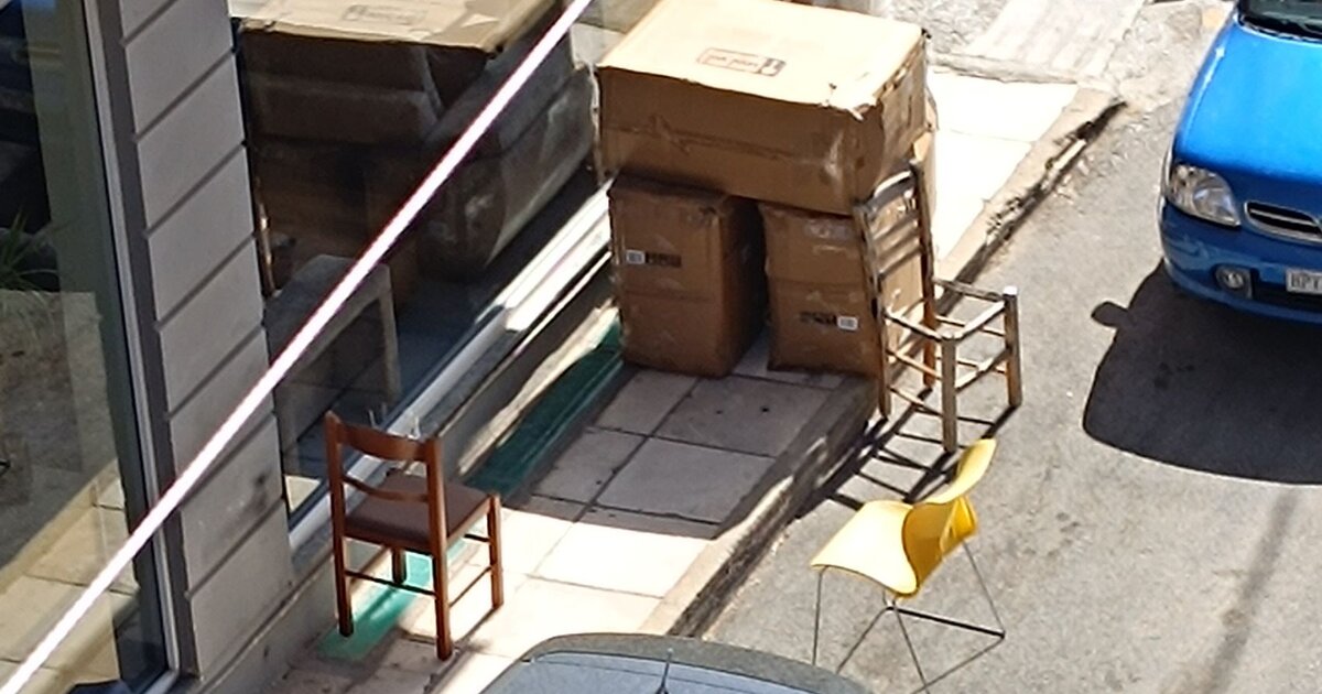 Αυτά είναι τα χάλια μας! Πεζοδρόμια για βιτρίνα καταστήματος, στο Ηράκλειο, ενώ και το πάρκινγκ ρεζερβέ κρατώντας το με καρέκλες!
