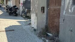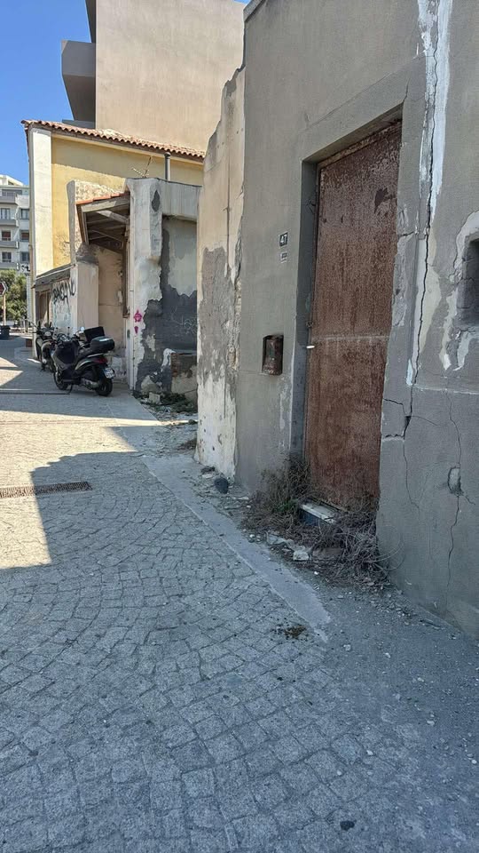 Τα σπασμένα, σκοτεινά πεζοδρόμια και το εγκαταλελειμμένο κτίριο