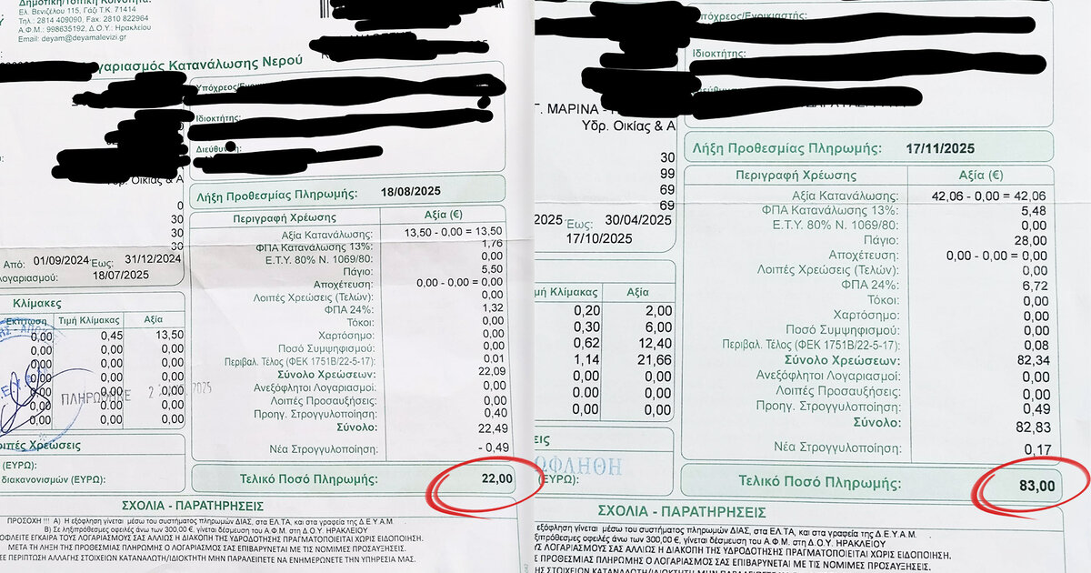"Υπέρογκη αύξηση" στον λογαριασμό νερού, "δυσάρεστη έκπληξη" για οικογένεια
