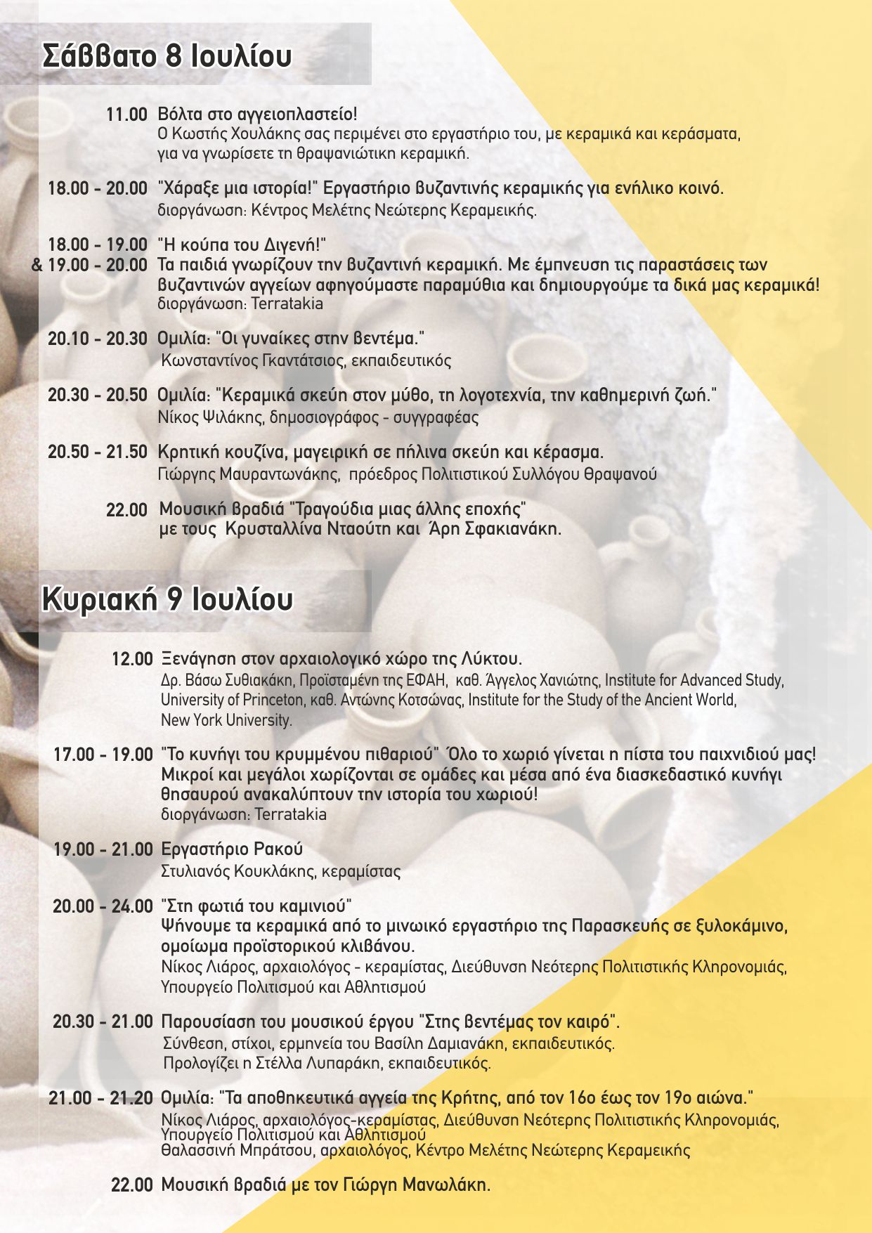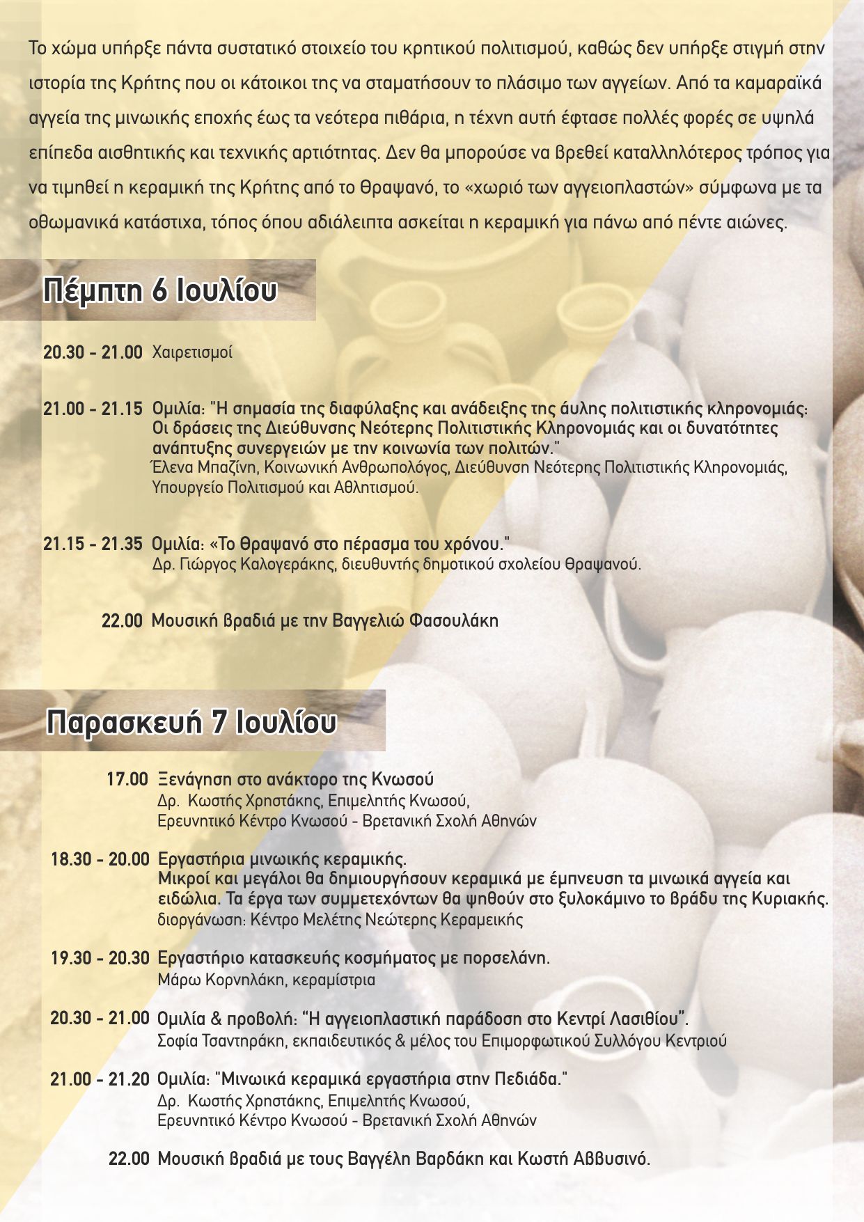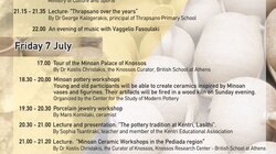 21.00- 21.20 : Ομιλία “Μινωϊκά κεραμικά εργαστήρια στην Πεδιάδα” Κωστής Χρηστάκης – Βρετανική Σχολή Αθηνών.