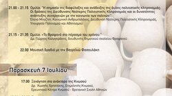 22.00: Μουσική βραδαυά με το συγκρότημα της Φασουλάκη Βαγγελιώς.