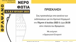 Από τη παρασκευή 14 Ιουλίου αρχίζουν οι 3ήμερες Κρητικές βραδιές «36η ΓΙΟΡΤΗ ΤΟΥ ΘΡΑΨΑΝΙΩΤΗ ΑΓΓΕΙΟΠΛΑΣΤΗ» με κρητικούς καλλιτέχνες και κρητικά χορευτικά συγκροτήματα στην κεντρική πλατεία του Θραψανού (από τις 21.00΄ κάθε βράδυ)