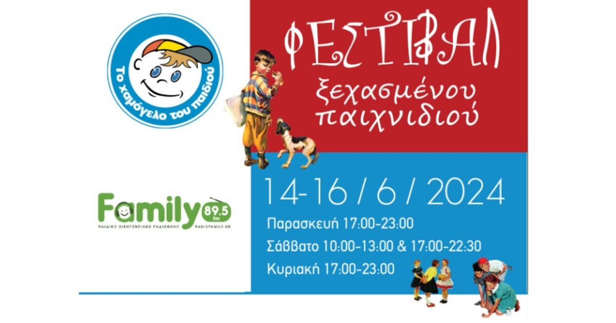«Το Χαμόγελο του Παιδιού» και το «Παιδικό Ραδιόφωνο Family fm 89.5» σας προσκαλούν στο 4ο Φεστιβάλ Ξεχασμένου Παιχνιδιού που θα πραγματοποιηθεί την Παρασκευή 14 Ιουνίου 17:00μ.μ.-23:00μ.μ., το Σάββατο 15 Ιουνίου και ώρες 10:00π.μ.-13:00μ.μ. και 17:00μ.μ.-22:30μ.μ. και την Κυριακή 16 Ιουνίου, 17:00μ.μ.-23:00μ.μ., με δωρεάν είσοδο, στον Καράβολα Ηρακλείου, στο θεατράκι. Το φεστιβάλ πραγματοποιείται με την στήριξη της Περιφέρειας Κρήτης.