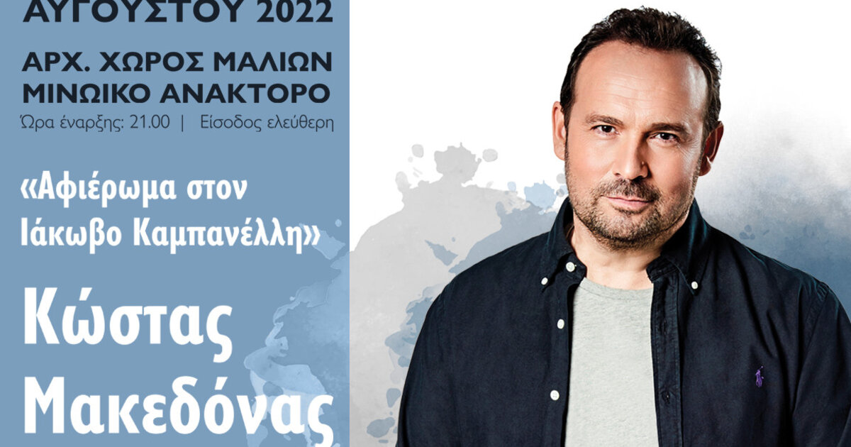 Στο πλαίσιο του 2ου Φεστιβάλ Κρήτης παρουσιάζεται το «Αφιέρωμα στον Ιάκωβο Καμπανέλλη» σε συνδιοργάνωση: Υπουργείου Πολιτισμού Εφορείας Αρχαιοτήτων Ηρακλείου Περιφέρειας Κρήτης Δήμου Χερσονήσου- Αντιδημαρχία Πολιτισμού Χορωδία Μαλίων με ελεύθερη την είσοδο για τους πολίτες.
