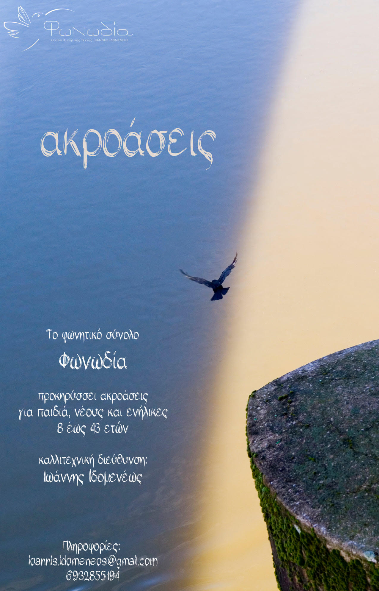 Το φωνητικό σύνολο Φωνωδία, προκηρύσσει ακροάσεις για παιδιά, νέους και ενήλικες 8 έως 43 ετών.
