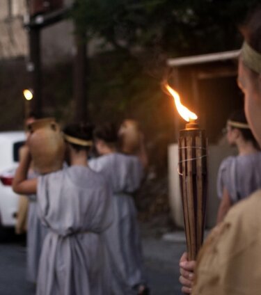 Με μια οργανωμένη και καλαίσθητη αναπαράσταση του εθίμου, με ιέρειες, τραγοπόδαρους και με πορεία εντός του χωρίου υπό το φως μονάχα των δάδων!