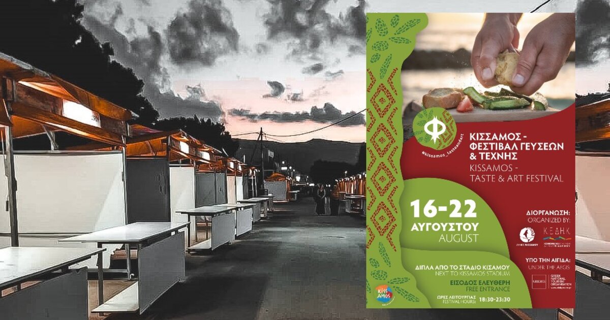 Αύριο 16 Αυγούστου ανοίγει τις πύλες του για 13η χρονιά το Κίσσαμος - Φεστιβάλ Γεύσεων & Τέχνης και θα διαρκέσει ως και 22 Αυγούστου στον παραλιακό δρόμο δυτικά του Δημοτικού Σταδίου Κισσάμου με ώρες λειτουργίας από 18:30 έως 23:30.