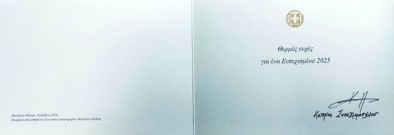 Από το σεισμόπληκτο Αρκαλοχώρι η ευχετήρια κάρτα της Προέδρου της Δημοκρατίας