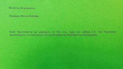 Ζωγραφιά μαθητή από το Γυμνάσιο Αρκαλοχωρίου «κοσμεί» στην ευχετήρια κάρτα της Προέδρου της Δημοκρατίας Κατερίνας Σακελλαροπούλου