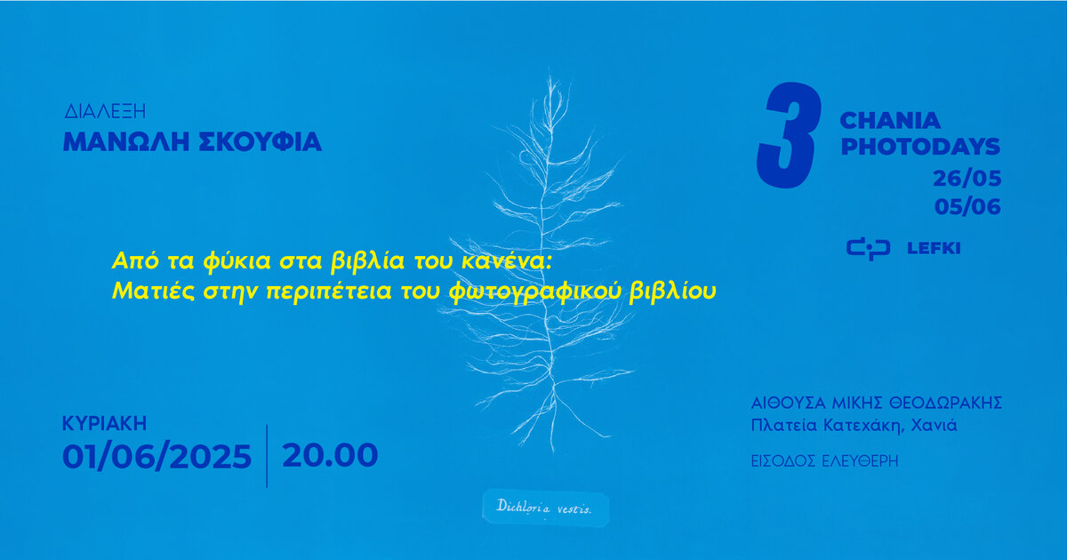 Η Λέσχη Φωτογραφίας και Κινηματογράφου Χανίων, με την υποστήριξη του Δήμου Χανίων, διοργανώνει το 3ο Chania Photodays από τις 26 Μαΐου έως τις 5 Ιουνίου 2025.