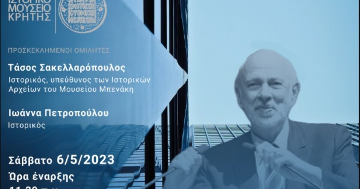 Στο Αμφιθέατρο Γιάννη Περτσελάκη του Ιστορικού Μουσείου Κρήτης - λόγω των καιρικών συνθηκών - θα πραγματοποιηθεί τελικά η αυριανή εκδήλωση της Εταιρίας Κρητικών Ιστορικών Μελετών που είναι αφιερωμένη στον Άγγελο Δεληβορριά