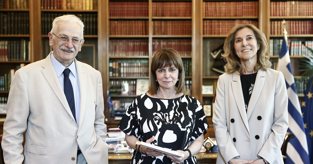 Με την Πρόεδρο της Δημοκρατίας Κατερίνα Σακελλαροπούλου συναντήθηκαν σήμερα Τετάρτη, στο γραφείο της στο Προεδρικό Μέγαρο, η Πρόεδρος του Συμβουλίου της Επικρατείας Ευαγγελία Νίκα και ο Γενικός Διευθυντής του Εθνικού Ιδρύματος «Ελευθέριος Κ. Βενιζέλος» Νικόλαος Παπαδάκης-Παπαδής, οι οποίοι της παρέδωσαν συμβολικά το πρώτο αντίτυπο από τον συλλογικό τόμο «Εννέα δεκαετίες Συμβούλιο της Επικρατείας: οι οραματισμοί του Ελευθερίου Βενιζέλου και η εξέλιξη του θεσμού στη διαδρομή του χρόνου», που μόλις κυκλοφόρησε.