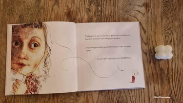 Η εικονογράφηση της Ντανιέλας Σταματιάδη εκφραστική, επικεντρωμένη στα μάτια, που λένε πάντα τις μεγάλες αλήθειες και στα χέρια που δείχνουν, αγκαλιάζουν, δημιουργούν, ακουμπούν…