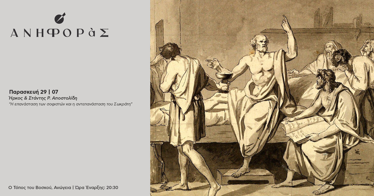 Στην εκρηκτική σύγκρουση της Σκέψης των Σοφιστών με τον Σωκράτη θα μας εισαγάγει η συζήτηση ανάμεσα στους αδερφούς Ἡρκο και Στάντη Αποστολίδη.