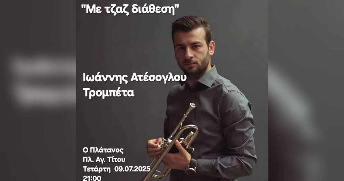 Οι jazz βραδιές ξεκινούν την Τετάρτη 9 Ιουλίου, στις 21:00 με τον Ιωάννη Ατέσογλου στην τρομπέτα