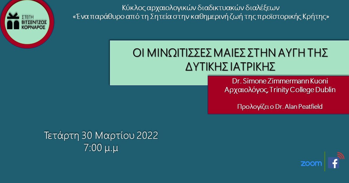 Η Στέγη Βιτσέντζος Κορνάρος διοργανώνει την 3η διαδικτυακή διάλεξη του κύκλου αρχαιολογικών διαλέξεων Ένα παράθυρο από τη Σητεία στην καθημερινή ζωή της προϊστορικής Κρήτης με τίτλο: Οι μινωίτισσες μαίες στην αυγή της δυτικής ιατρικής