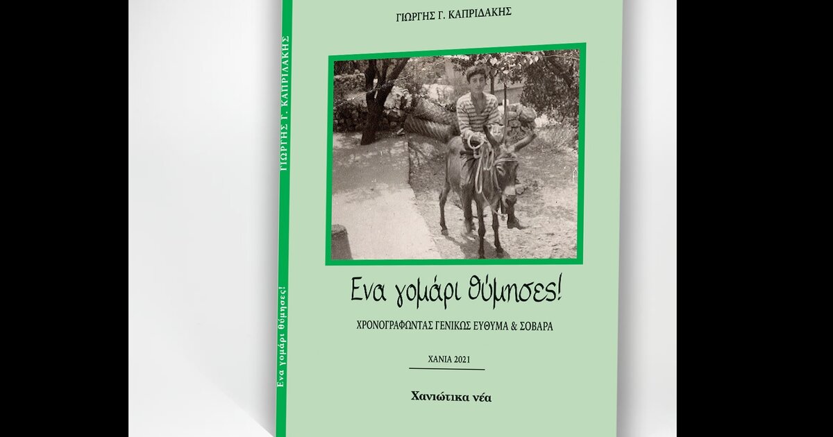 Αύριο, Τρίτη 3 Μαΐου 2022 και ώρα 11.00 π.μ. στο Πνευματικό Κέντρο Χανίων, η Π.Ε. Χανίων θα διανείμει το βιβλίο του Γιώργη Καπριδάκη, «Ένα γομάρι θύμησες!» σε Φορείς Παιδείας και Πολιτισμού του Νομού Χανίων.