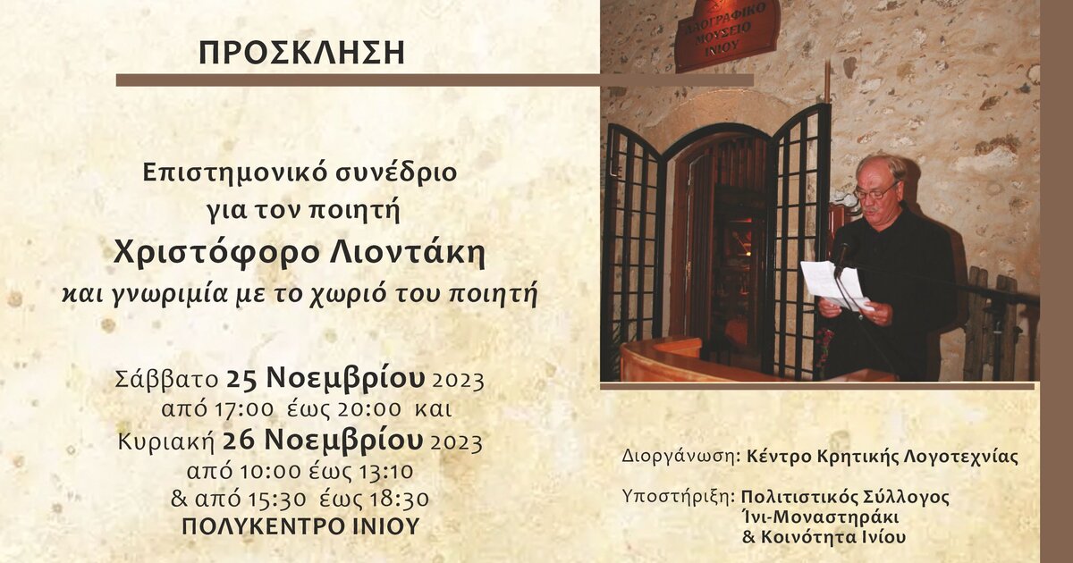 Διήμερο επιστημονικό συνέδριο για τον ποιητή Χριστόφορο Λιοντάκη