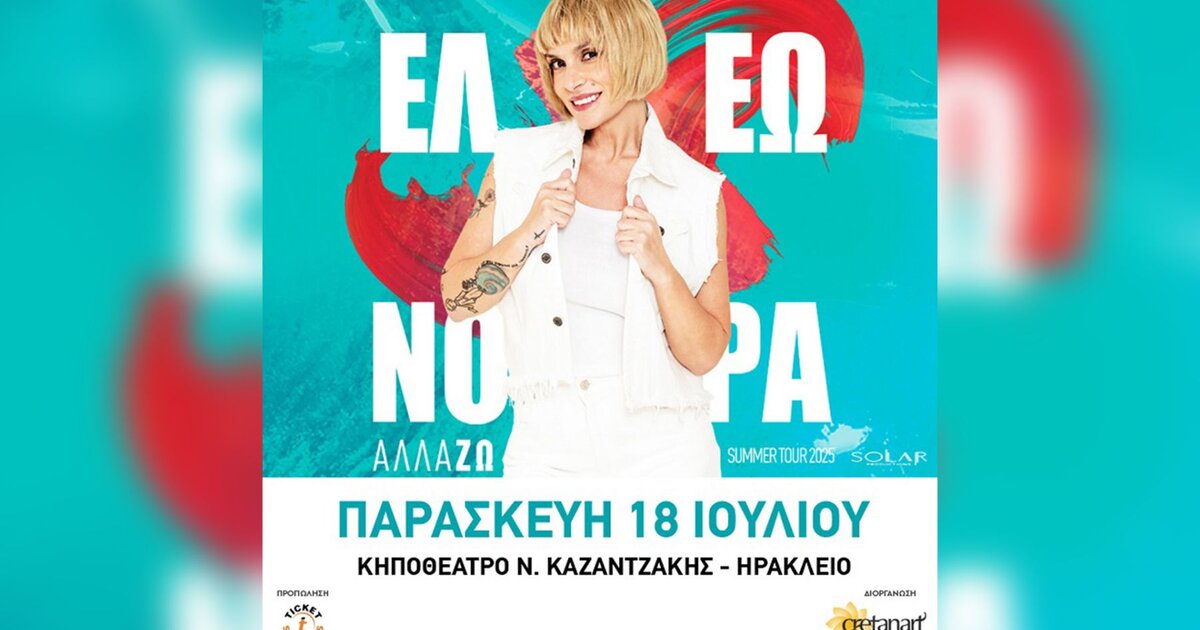 Στην Κρήτη, με την καλοκαιρινή της περιοδεία με τίτλο "ΑλλάΖΩ", με ένα δυναμικό πρόγραμμα που συνδυάζει rock, λαϊκό και νέο pop‑ηλεκτρονικό ήχο έρχεται στην Κρήτη η αγαπημένη ερμηνεύτρια Ελεωνόρα Ζουγανέλη!