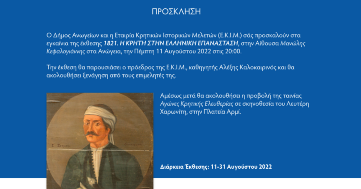 Εγκαίνια της Έκθεσης: 1821. Η Κρήτη στην ελληνική επανάσταση