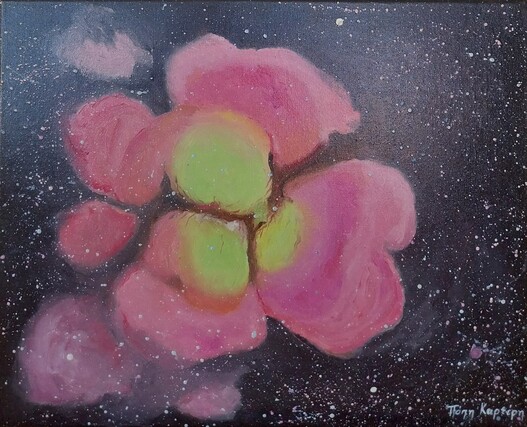 Η γνωστή εικαστικός Πόπη Καρτέρη -με εννέα ατομικές εκθέσεις από το 1984 και συμμετοχή σε πολλές ομαδικές -αποτυπώνοντας με τα έργα της το σύμπαν, κατασκευάζει τον δικό της κόσμο, διατυπώνει τη δική της μακροσκοπική θεώρηση του απείρου. Κάθε της έργο ενσωματώνει διαφορετικά στοιχεία φαντασίας, επιστημονικής ακρίβειας και συμβολισμού.