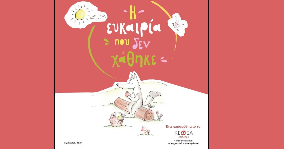 Την Τετάρτη 13 Δεκεμβρίου 2023 στις 18:30 στο χώρο του Πολύκεντρου Ηρακλείου Κρήτης, η Μονάδα για Άτομα με Ψυχιατρική Συννοσηρότητα του ΚΕΘΕΑ ΑΡΙΑΔΝΗ θα πραγματοποιήσει εκδήλωση για την παρουσίαση του παιδικού παραμυθιού «Η ευκαιρία που δεν χάθηκε».