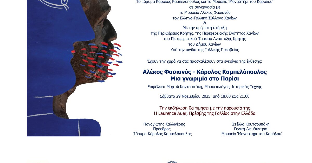 Το Ίδρυμα Κάρολος Καμπελόπουλος, Μουσείο “Μοναστήρι του Καρόλου”, σε συνεργασία με το Μουσείο Αλέκος Φασιανός, παρουσιάζουν την έκθεση: “Αλέκος Φασιανός - Κάρολος Καμπελόπουλος: Μια γνωριμία στο Παρίσι”. Η έκθεση θα ανοίξει το Σάββατο 29 Νοεμβρίου στις 6μμ.