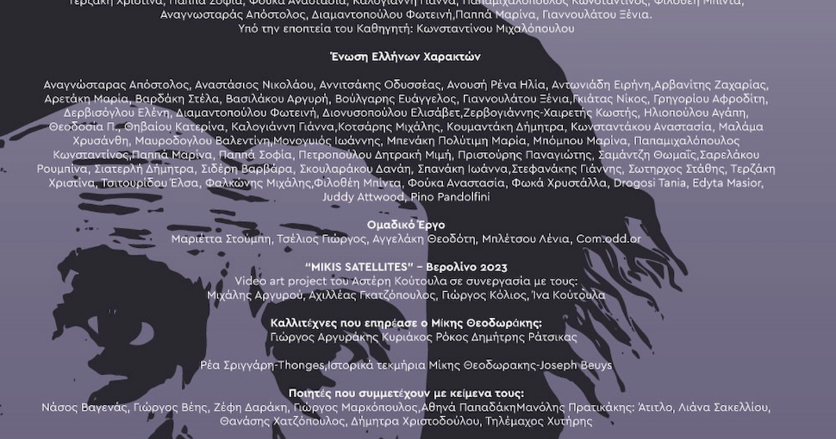 εικαστικόςΥπεύθυνη του Πολιτιστικού Προγράμματος: Η Πνευματική και Μουσική Δωρεά του Μίκη Θεοδωράκη στον Ελληνικό Λαό