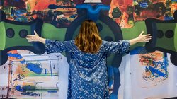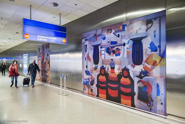 Έξι εντυπωσιακά έργα µεγάλων διαστάσεων, γεµάτα αινιγµατικές φιγούρες και εκρηκτικά χρώµατα θα κοσµήσουν τους διαδρόµους αφίξεων του Διεθνούς Αερολιµένα Αθηνών από τις 11 Απριλίου ως τις 11 Σεπτεµβρίου 2022. Η έκθεση στο Αεροδρόµιο της Αθήνας πραγµατοποιείται µε την επιµέλεια και το συντονισµό της κ. Χαράς-Ελένης Μητσοτάκη, Τοµεάρχη Δηµοσίων Σχέσεων και Πολιτισµού ΔΑΑ. Ταυτόχρονα, µια αναδροµική έκθεση της ζωγράφου θα φιλοξενηθεί στο Ιταλικό Μορφωτικό Ινστιτούτο της Αθήνας από τις 20 Μαΐου ως τις 30 Ιουνίου 2022.