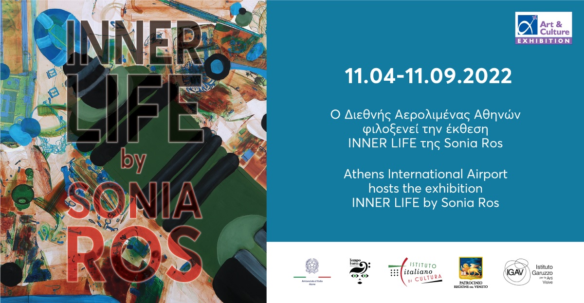 Η έκθεση «INNER LIFE» της Ιταλίδας ζωγράφου Sonia Ros σηµατοδοτεί το ξεκίνηµα µιας νέας συνεργασίας στο πλαίσιο της φιλοξενίας της διεθνούς σύγχρονης τέχνης στο Αεροδρόµιο της Αθήνας. Πρόκειται για µια συµπαραγωγή του Διεθνούς Αερολιµένα Αθηνών και του Ιταλικού Μορφωτικού Ινστιτούτου, µε την επιµέλεια της Αφροδίτης Οικονοµίδου.