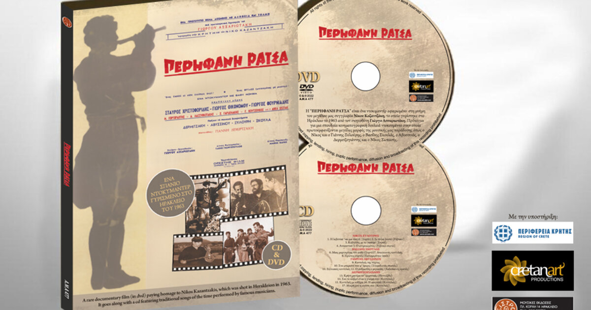 Η εταιρεία μας "Αεράκης - Κρητικό Μουσικό Εργαστήρι & Σείστρον" σε συνεργασία με την "Cretanart productions" και την υποστήριξη της "Περιφέρειας Κρήτης", βρίσκονται στην ευχάριστη θέση να σας ανακοινώσουμε την έκδοση αυτής της πολυτελούς κασετίνας αποτελούμενη από την ταινία μικρού μήκους "Περήφανη Ράτσα" και ένα μουσικό cd με τραγούδια της εποχής από τους καλλιτέχνες που εμφανίστηκαν στην ταινία όπως ο Νίκος Ξυλούρης, ο Βασίλης Σκουλάς, ο Γιώργος Αβυσσινός και ο Δερμιτζογιάννης.