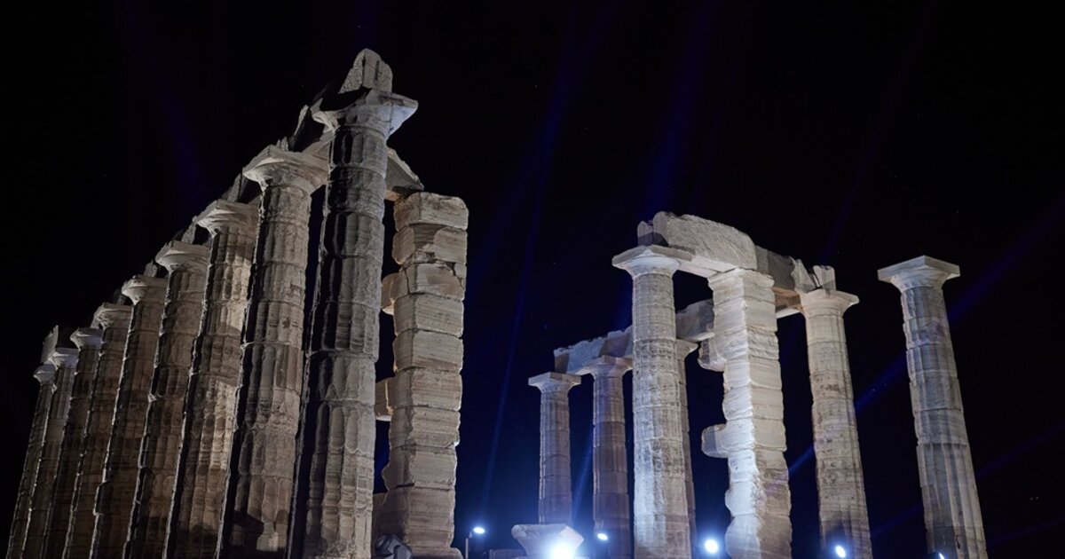 Εντυπωσιακός ο νέος φωτισμός του ναού του Ποσειδώνα στο Σούνιο