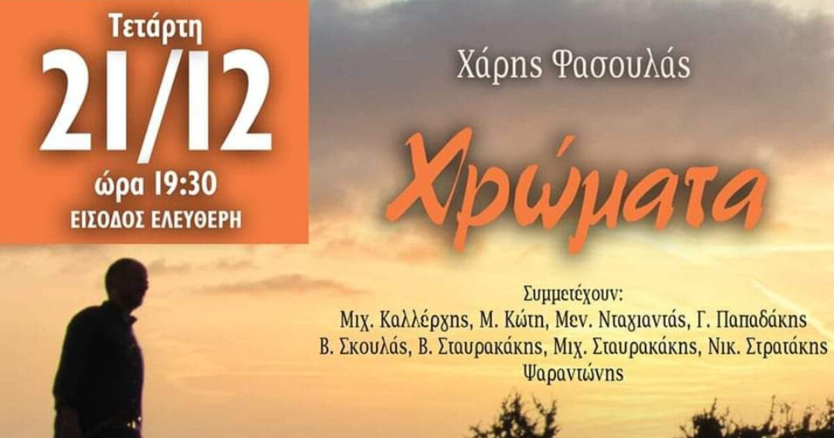 Το Κρητικό Μουσικό Εργαστήρι «ΣΕΙΣΤΡΟΝ» Αεράκης και ο Χάρης Φασουλάς παρουσιάζουν την τρίτη τους δισκογραφική δουλειά, με τίτλο «ΧΡΩΜΑΤΑ».