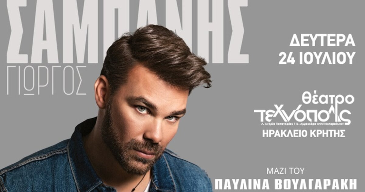 Ο Γιώργος Σαμπάνης δίνει καλοκαιρινό ραντεβού με το κοινό του Ηρακλείου, απόψε στο Θέατρο Τεχνόπολις, παρέα με τον Love Radio Κρήτης 102.8.