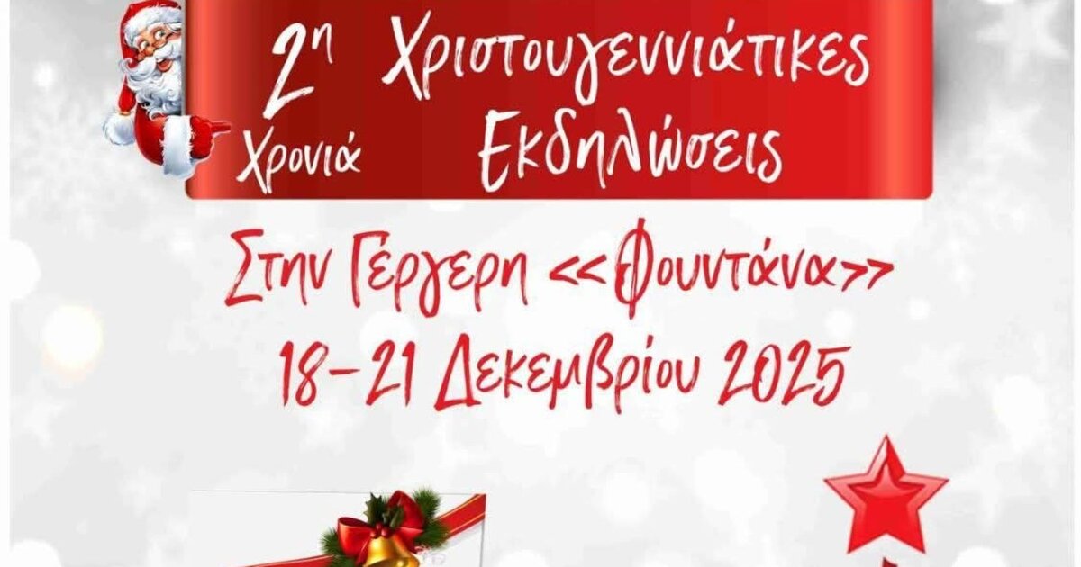 Ο Δήμος Γόρτυνας – Κοινωνική Υπηρεσία και οι φορείς της Δημοτικής Ενότητας Ρούβα προσκαλούν στις χριστουγεννιάτικες εκδηλώσεις που θα πραγματοποιηθούν από τις 18 έως έως και τις 21 Δεκεμβρίου 2025, στην Γέργερη («Φουντάνα»).