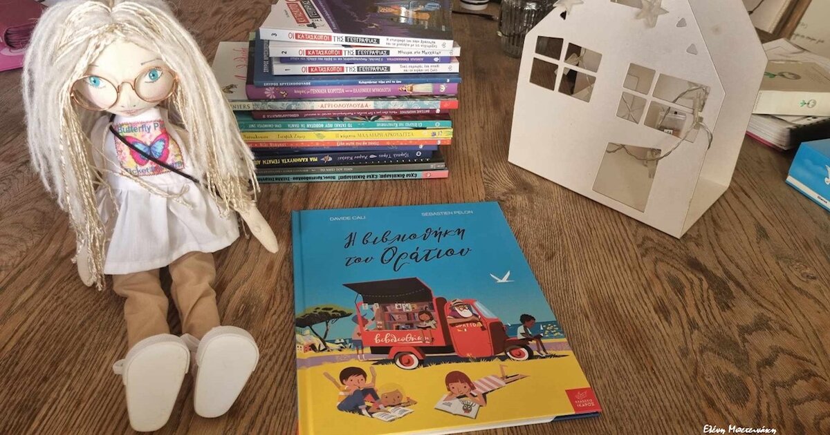 Και μια μέρα που είχε πολλή ζέστη καθώς πάρκαρε την βιβλιοθήκη ψηλά σ ένα λοφίσκο κι ο Οράτιός μας κατέβηκε σε μια πηγή να ξεδιψάσει κι άκουσε αμέσως μετά μια τρομερή φασαρία. Γυρνώντας το κεφάλι του είδε την τρίκυκλη βιβλιοθήκη του να κουτρουβαλά στο φαράγγι και να …σκορπίζεται. Το χειρόφρενο μάλλον «ξεχάστηκε»…