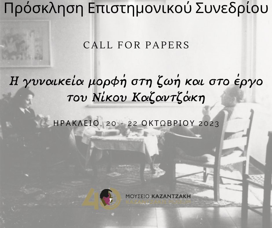 Το Μουσείο Νίκου Καζαντζάκη στο πλαίσιο του εορτασμού των σαράντα χρόνων λειτουργίας του διοργανώνει επιστημονικό συνέδριο με θέμα «Η γυναικεία μορφή στη ζωή και στο έργο του Νίκου Καζαντζάκη», το οποίο θα πραγματοποιηθεί στο Ηράκλειο, από 20-22 Οκτωβρίου 2023.