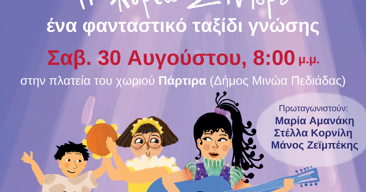 «Η κυρία Σιντορέ, ένα φανταστικό ταξίδι γνώσης»: Μία θεατρική παράσταση για παιδιά –και όχι μόνον - έρχεται στα Πάρτιρα το Σάββατο 30 Αυγούστου, στην πλατεία του χωριού, στις 8 το βράδυ.