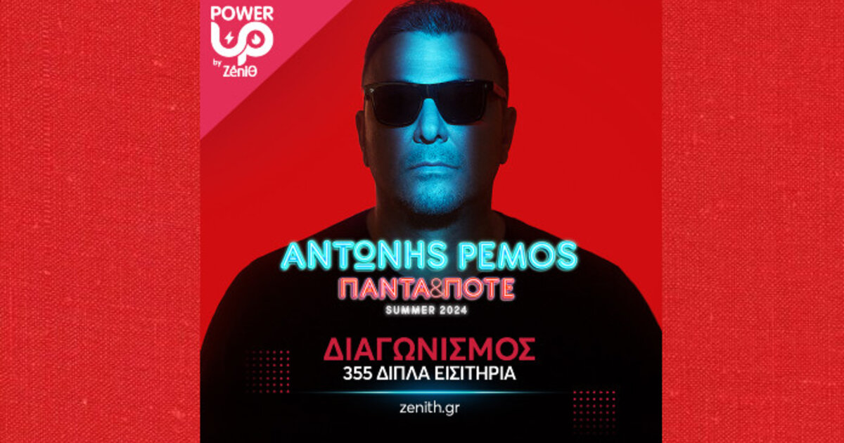 Από σήμερα, μέσα από την πλατφόρμα προνομίων Power Up της ZeniΘ, οι ενδιαφερόμενοι μπορούν να λάβουν μέρος στο διαγωνισμό και να διεκδικήσουν μία από τις 355 διπλές προσκλήσεις που θα είναι διαθέσιμες για τις συναυλίες του Αντώνη Ρέμου σε: