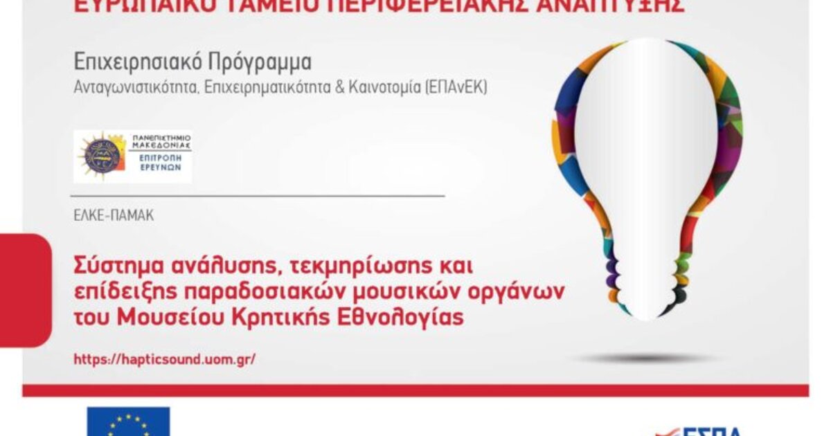 Για περισσότερες πληροφορίες για το έργο μπορείτε να επισκεφθείτε τον ιστότοπο: https://hapticsound.uom.gr