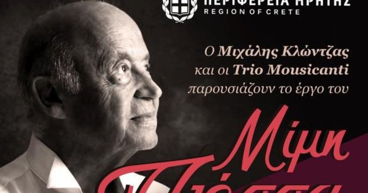 Συναυλία-αφιέρωμα στον αξέχαστο Μίμη Πλέσσα θα πραγματοποιηθεί με την στήριξη της Περιφέρειας Κρήτης οργανωμένη από τον Μιχάλη Κλώντζα και την Λουκίλα Καρρέρ-Πλέσσα, σύζυγο του μουσικοσυνθέτη.