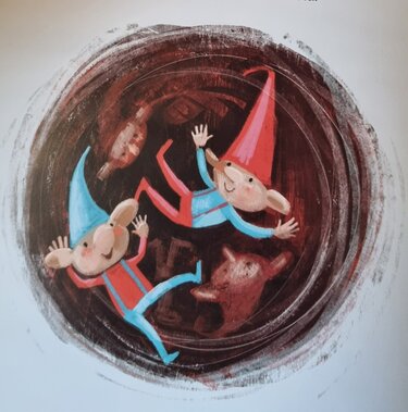 Η νεραΐδα πάλι των καλικάντζαρων, η κατάλευκη Άχνη, τους έλεγε να βιαστούν. Έπρεπε σχεδόν αθόρυβα να αναχωρήσουν σε λίγες ώρες και να κρατήσουν για ανάμνηση ό, τι όμορφο έζησαν. Έτσι αρχίσανε να ψαχουλεύουν …